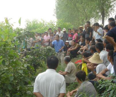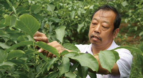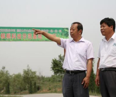從1999年開始,在最難開發的太行山干旱丘陵崗地,李保國和課題組成員選取臨城縣的鳳凰嶺,確立了“聚土集水”的開發策略,選種薄皮核桃。