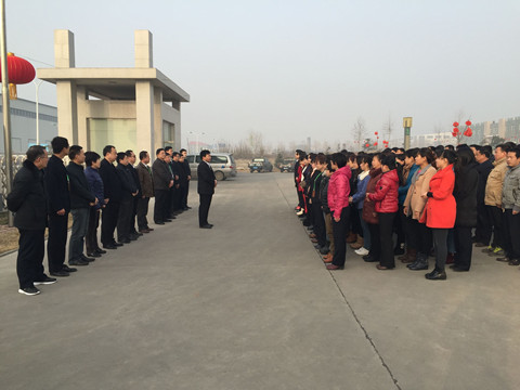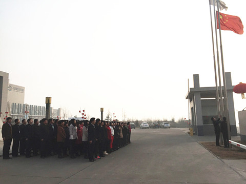伴隨著嘹亮的國歌,各位員工斗志昂揚,共同注視著紅旗高高升起,迎接新的開始。隨后,董事長高勝福帶領公司高層管理人員依次為大家拜年,祝愿綠嶺在新的一年再創輝煌!