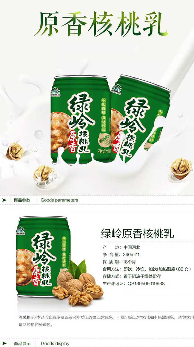 產(chǎn)品簡介:產(chǎn)品名稱:綠嶺原香核桃乳 凈含量: 240ml 保質(zhì)期:18個月 存儲方式:置于陰涼干燥處