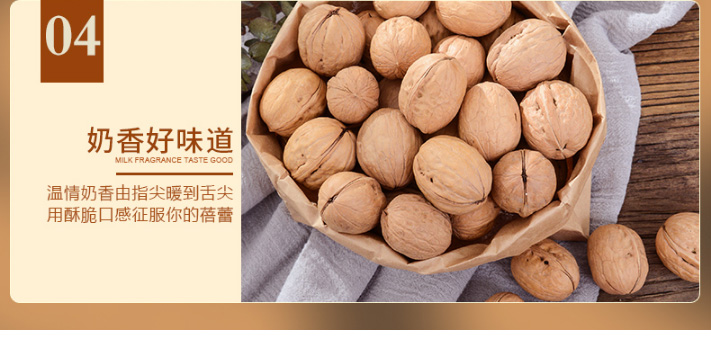 產品簡介: KAKA烤核桃,采用綠嶺有機核桃為原料,使用宮廷秘制配方和轉爐工藝,經過24小時低溫烘烤,讓原本就美味的核桃,顆顆入味;讓人吃起來不想停,吃過后還想吃,充分享受皇家貴族之尊味。